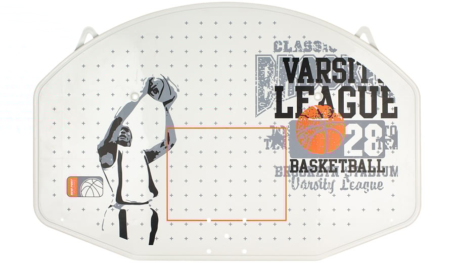 | Produktinformationen | • Brett aus synthetischer Glasfiber • 12 mm Metallring mit Epoxy Beschichtung, Durchmesser 42 cm • Netz aus Polyamid • sechseckiges Brett mit abgerundeten Ecken, Abmessung 90.2 x 60.4 x 1.6 cm |