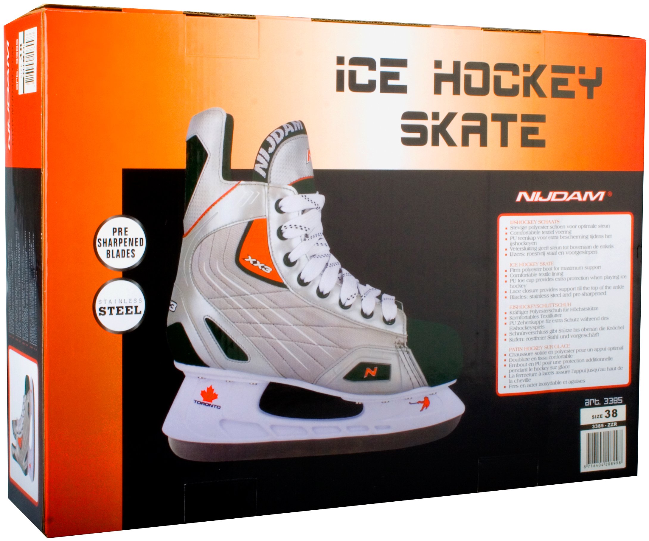 | Produktinformationen | • Polyester K230 Mesh Eishockeyschuh • PU Zehenkappe • Luxus Schnürverschluss • vernieteter synthetischer Kufenhalter mit Eishockeykufen aus rostfreiem Stahl • Schlittschuhkufen sind schon vorgeschärft worden |