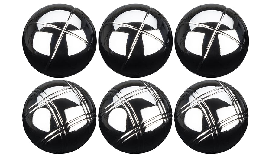 | Produktinformationen | • verchromte Stahlkugeln, Durchmesser 73 mm • But aus Holz, Durchmesser 28 mm • Gewicht Stahlkugel ca. 720 Gramm • 2 verschiedene Riffelungen • Magnet mit Polyamid Schnur, Länge 95 cm • Polyester Etui |