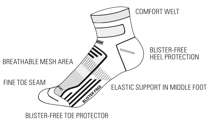 | Produktinformationen | • weichgekämmte Baumwolle • blasenfreie Technologie im Zehen- und Fersenbereich • Stoßabsorbierend • atmungsaktive Mesh-Konstruktion oben auf dem Fuß • Y-förmige Ferse für hervorragenden Passform • Mittelfußunterstützung • ergonomische Konstruktion für Links und Rechts |