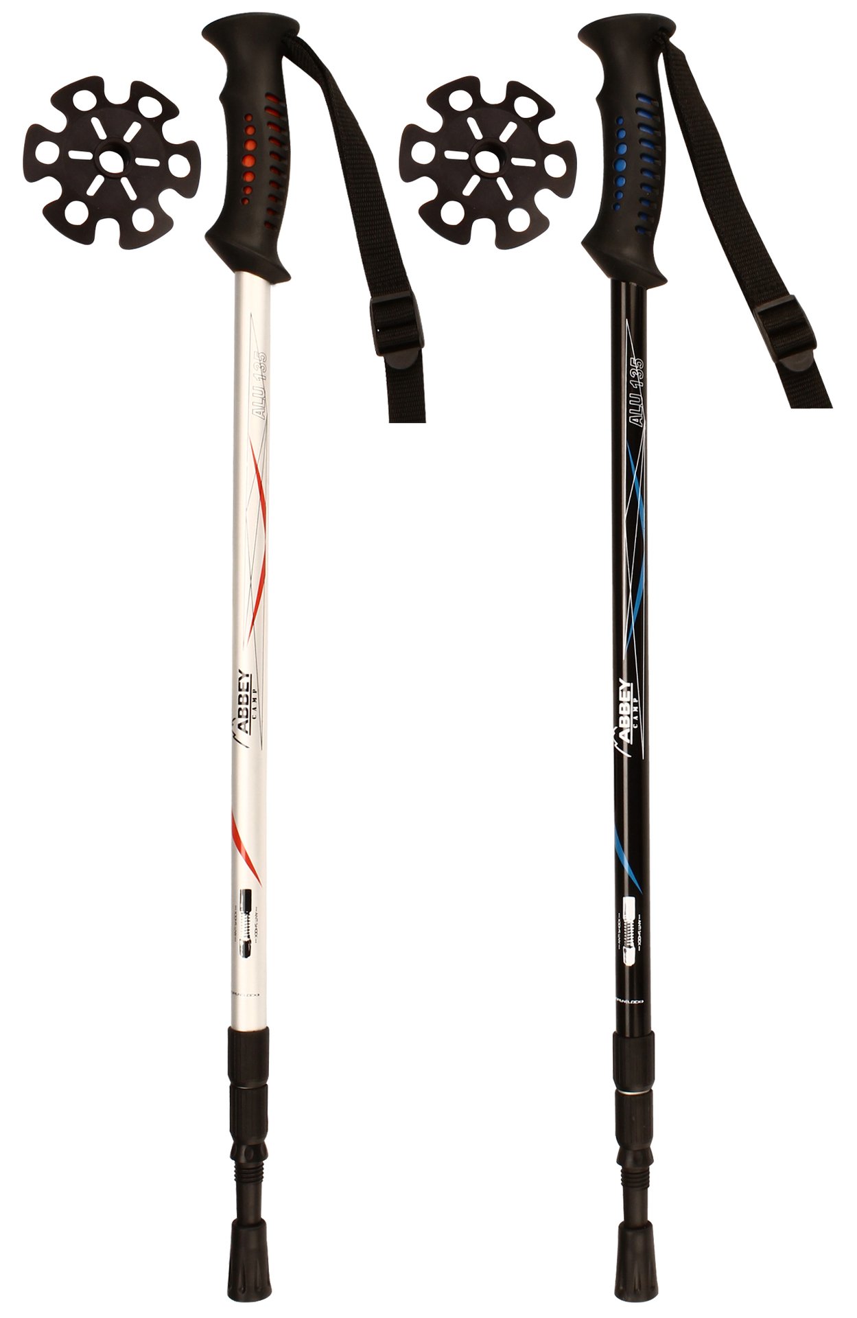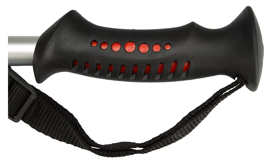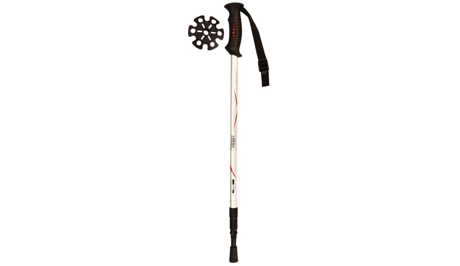 | Characteristics | • steel tip in rubber holder • rubber handgrip • PP wrist strap • rubber snow basket • adjustable hiking cane with rotation lock-system • length adjustable from 63 up to 135 cm • anti-shock suspension • anatomically shaped handgrip with wristband • snow basket for extra grip in mud or snow |