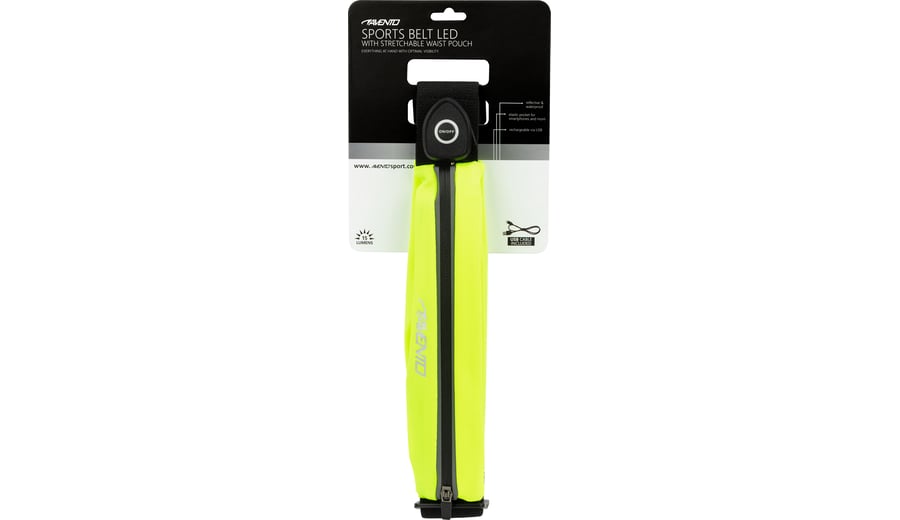 | Characteristics | • reflective pouch with LED (15 lumens) • adjustable elastic waistband with quick-lock 65 - 90 cm • rechargeable battery with USB port • zippered pocket, suitable for smartphones up to 210 x 90 mm • earphone opening • including dual USB cable |