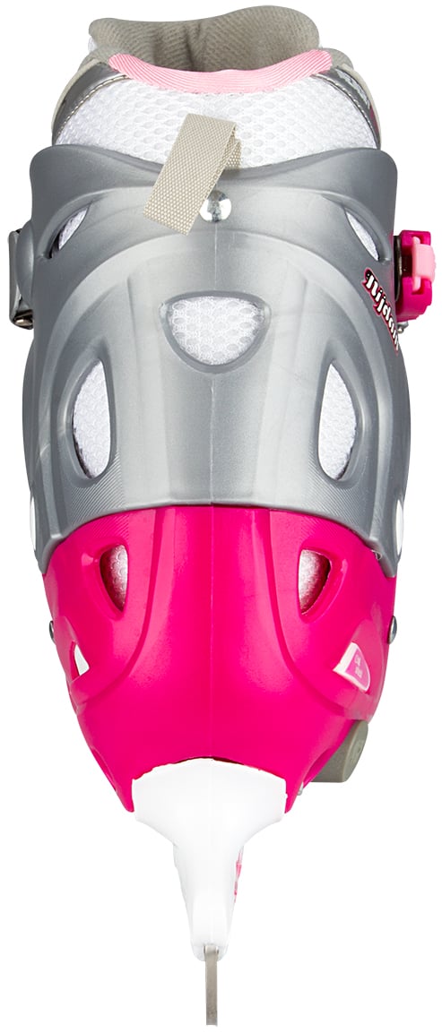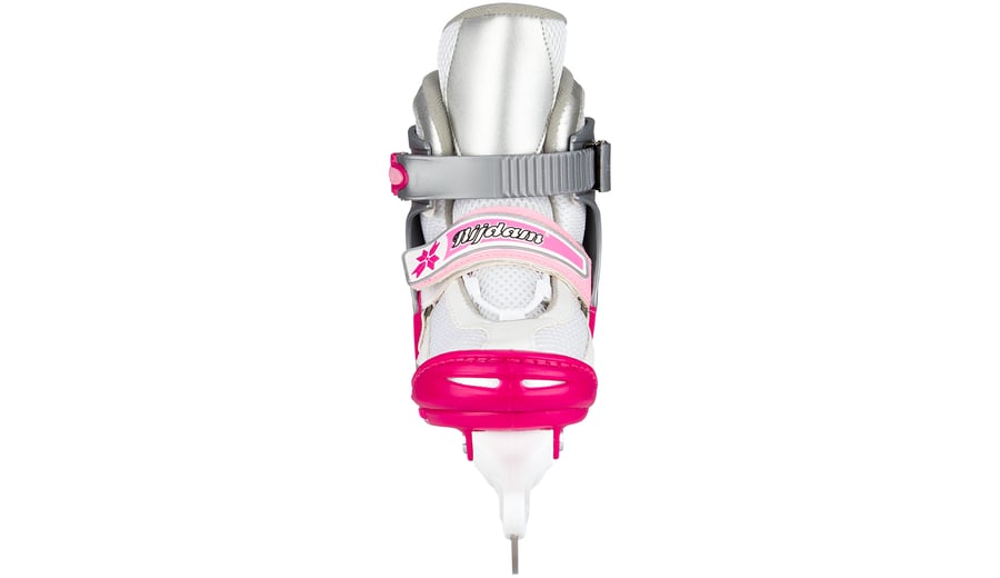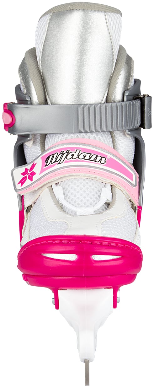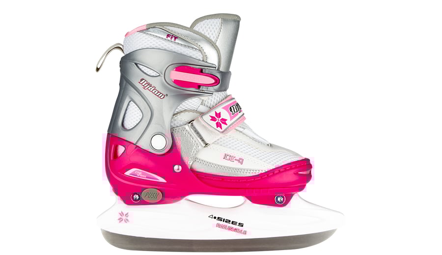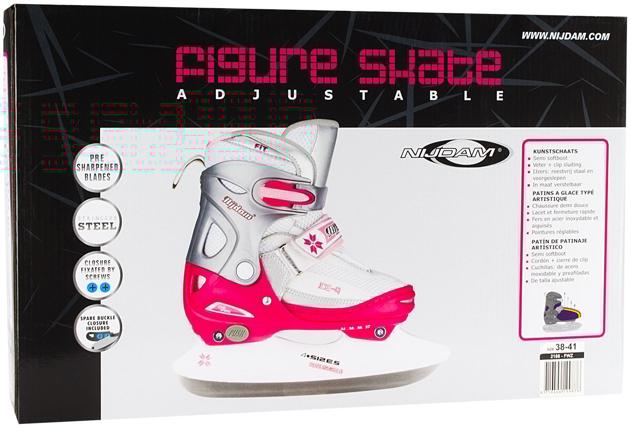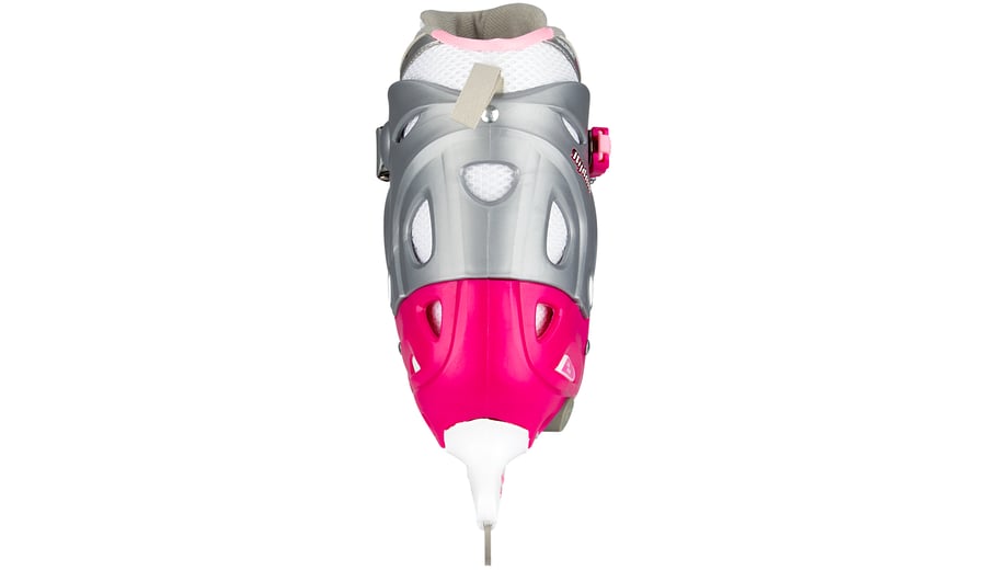 | Kenmerken | • polyamide mesh/kunstlederen semi-softboot • verstelbaar in 4 maten d.m.v. drukknop aan hiel • 2-delige snelsluiting met slot, bevestigd d.m.v. een eenvoudig te vervangen verschroefde verbinding • maat 30/33 met 2x klittenbandsluiting, maat 34/37 en 38/41 met vetersluiting en wreefband met klittenband • TPE enkel-, hiel- en teenkap • synthetische schaatshouder met roestvrijstalen schaatsijzers, niet voorzien van kunstschaatspunt • schaatsijzers zijn reeds voorgeslepen |
