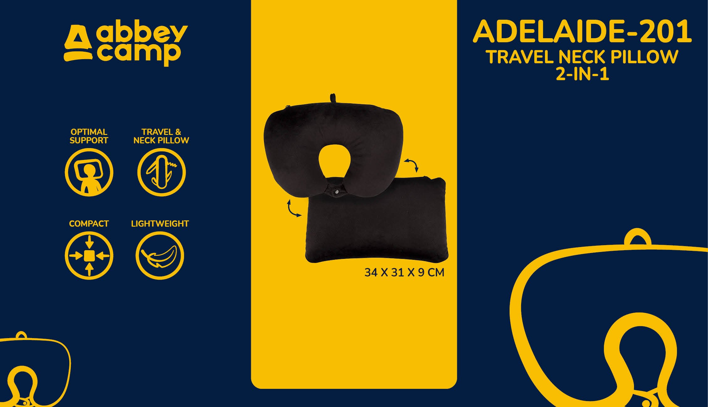 | Kenmerken | • één zijde 100% fleece, andere zijde 100% polyamide • d.m.v. druksluiting dicht te maken voor nog betere ondersteuning van schouders, nek en hoofd • d.m.v. ritssluiting in rechthoekig kussen te veranderen • met druksluiting gemakkelijk te bevestigen aan bijv. een rugzak • afmeting ca 34 x 31 x 9 cm |
