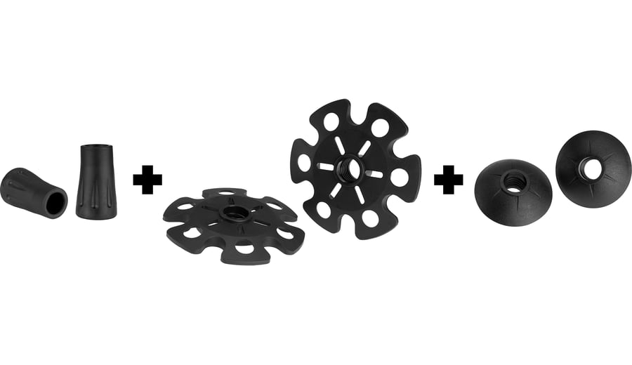 | Kenmerken | • 3 sets (trekking tip, trekking disks, sneeuw disks) • binnendiameter ca. 1.1 cm • materiaal van trekking tip: TPR • materiaal van trekking- en sneeuw disk: PE • geschikt voor Abbey Camp wandelstokken en de meeste andere merken |