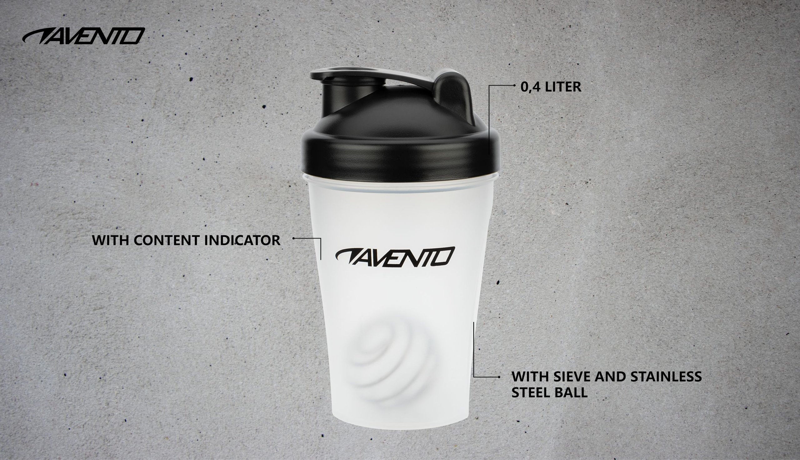 | Kenmerken | • LDPE beker • rubberen dop • roestvrij stalen bal • draaidop en drinktuit met afsluitdop • inhoudsdisplay aan de zijkant van de beker • stalen bal om sportdrank te shaken • raster voorkomt opdrinken van klontjes • hoogte beker 16 cm • inhoud 0.4 liter |