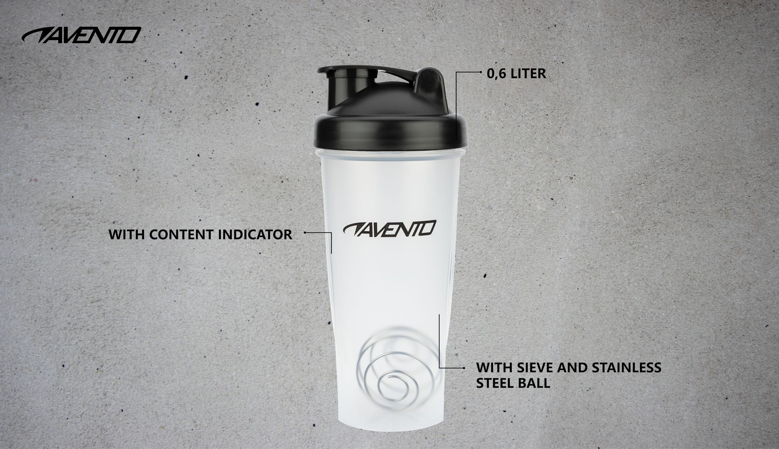| Kenmerken | • LDPE beker • rubberen dop • roestvrij stalen bal • draaidop en drinktuit met afsluitdop • inhoudsdisplay aan de zijkant van de beker • stalen bal om sportdrank te shaken • raster voorkomt opdrinken van klontjes • hoogte beker 22 cm • inhoud 0.6 liter |
