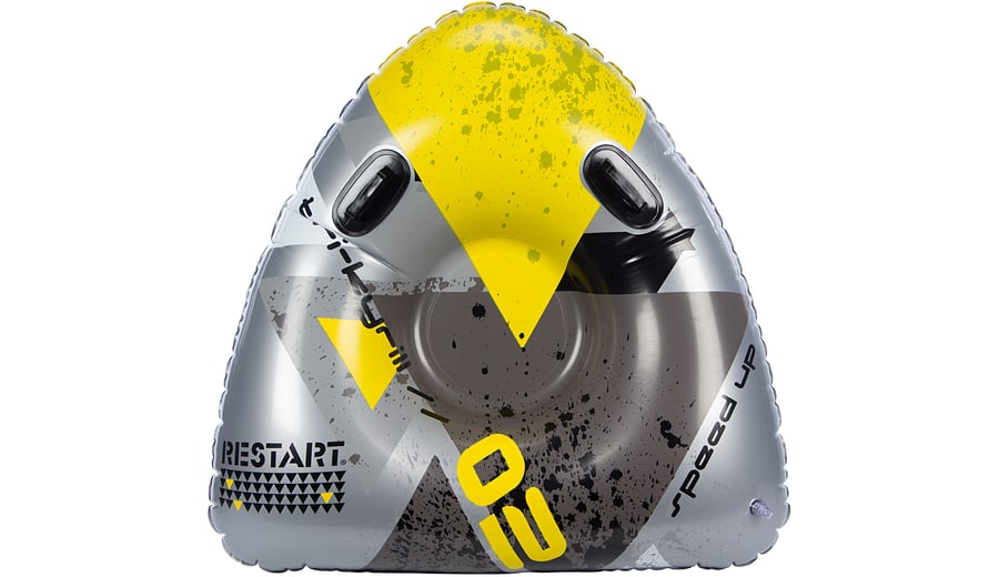 | Kenmerken | • -25°C cold-resistant PVC, dikte 0.38 mm • 2 kunststof handgrepen • 3 glijders aan onderzijde • ventiel aan bovenzijde • triangel model • afmeting ca. 110 x 110 x 35 cm (opgepompt) • maximale belasting 90 kg |