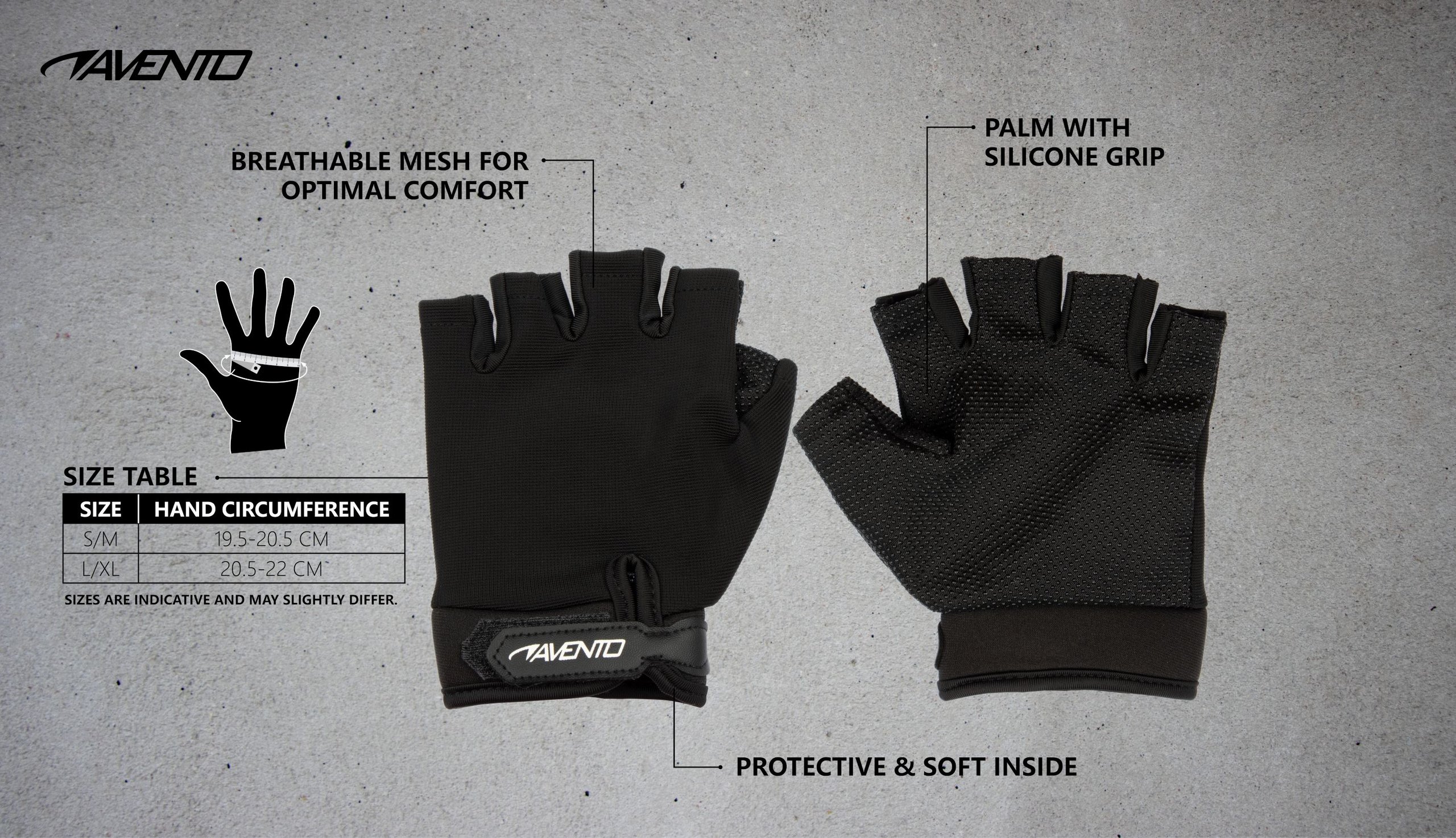 | Kenmerken | • polyester handpalm met zachte binnenkant • stretch inzetstukje tussen de vingers voor comfortabele pasvorm • siliconen grip op de volledige handpalm voor perfect grip • ademend mesh aan de bovenzijde voor optimaal comfort • klittenbandsluiting |