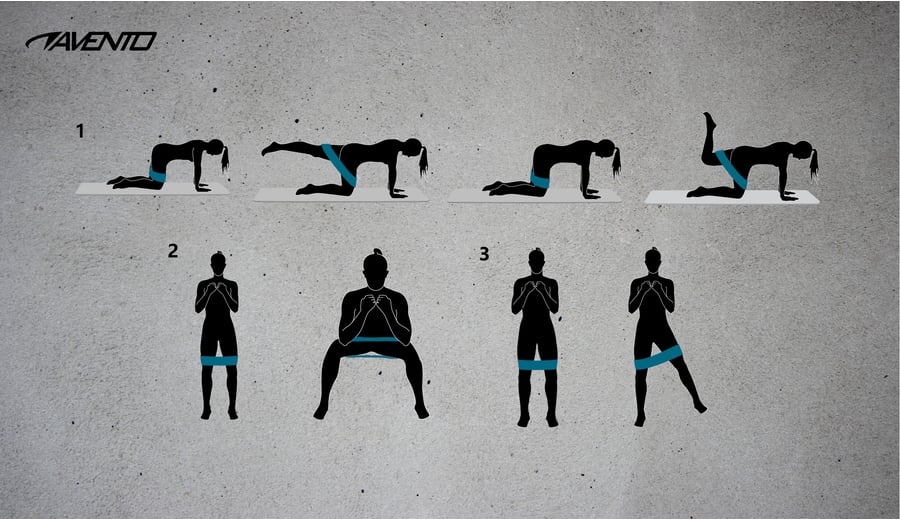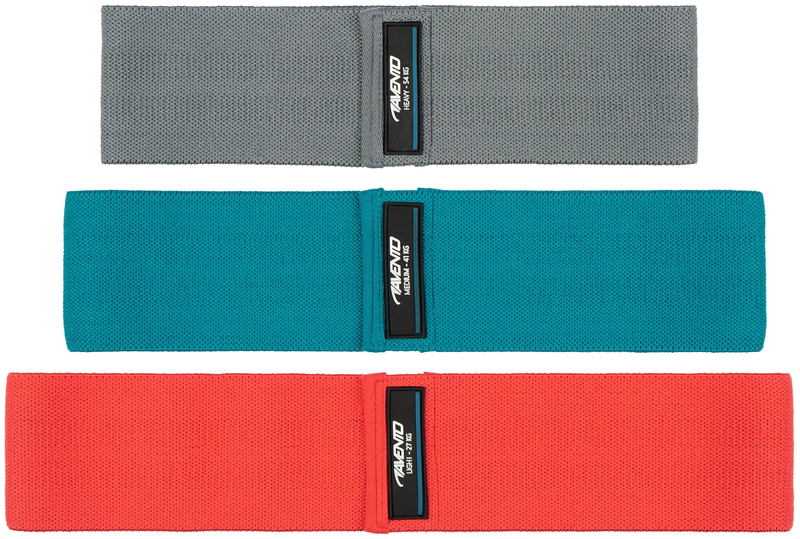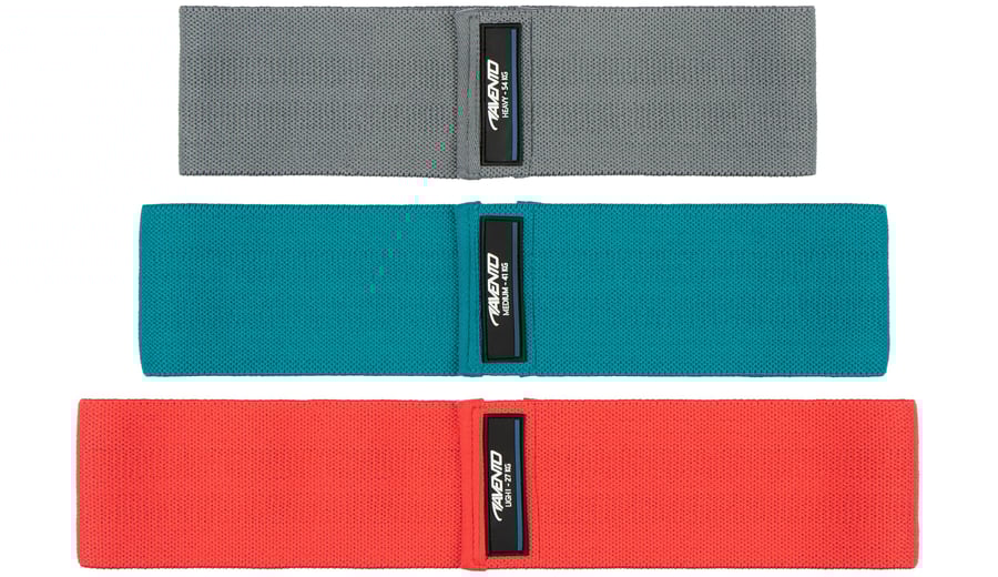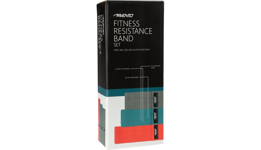 | Kenmerken | • zachte elastische weerstandsbanden • antislip textuur aan binnenzijde • breedte: 8 cm • set van 3 verschillende weerstandsbanden: light (roze): 27 kg trekkracht, lengte 32 cm medium (blauw): 41 kg trekkracht, lengte 37 cm heavy (grijs): 54 kg trekkracht, lengte 42 cm |