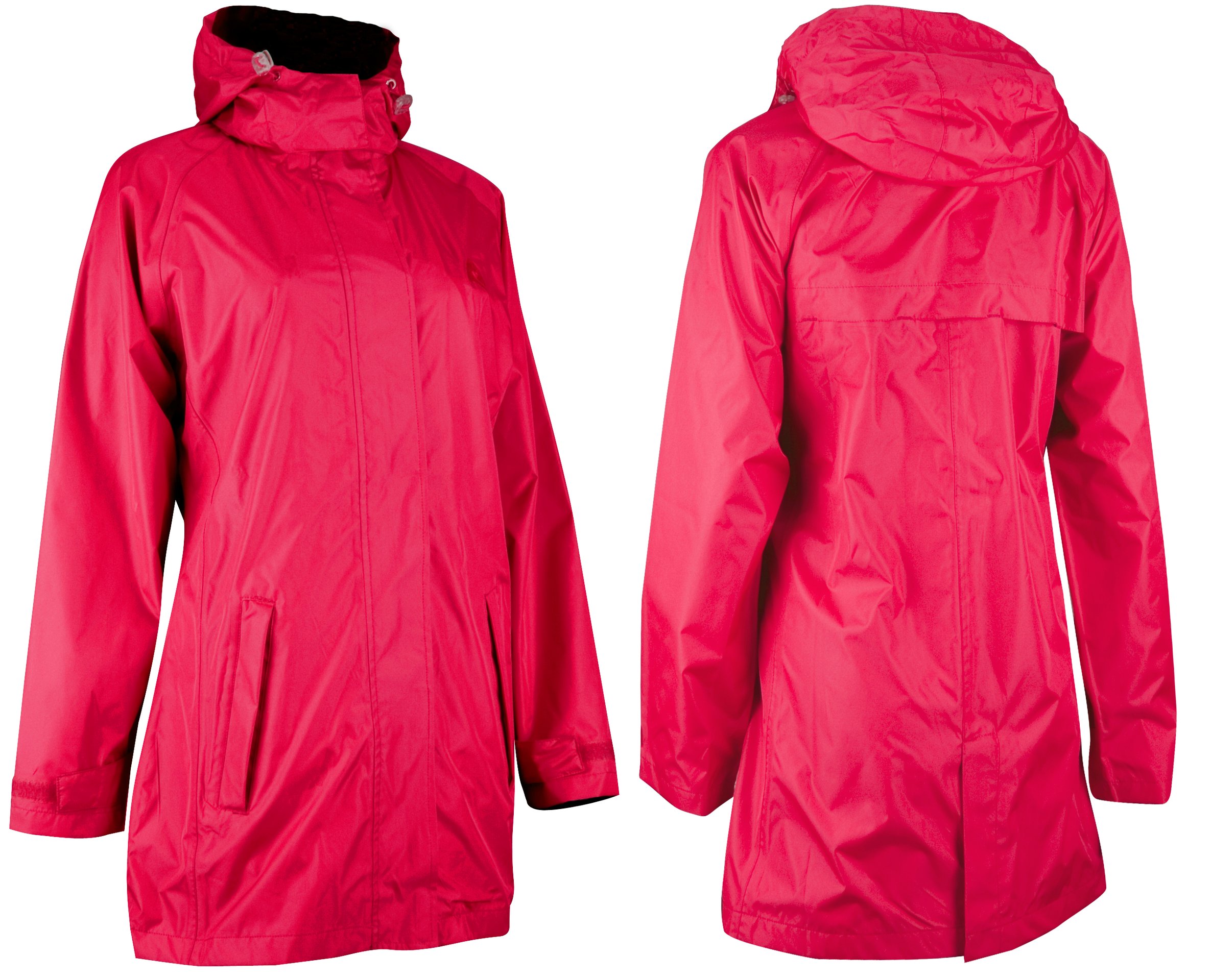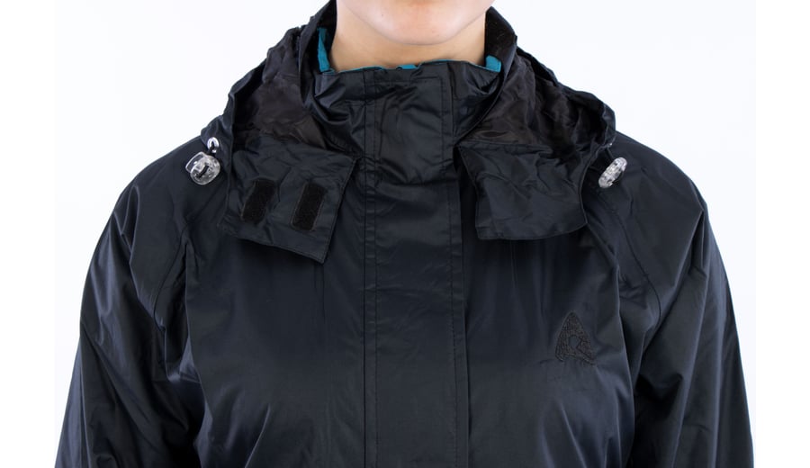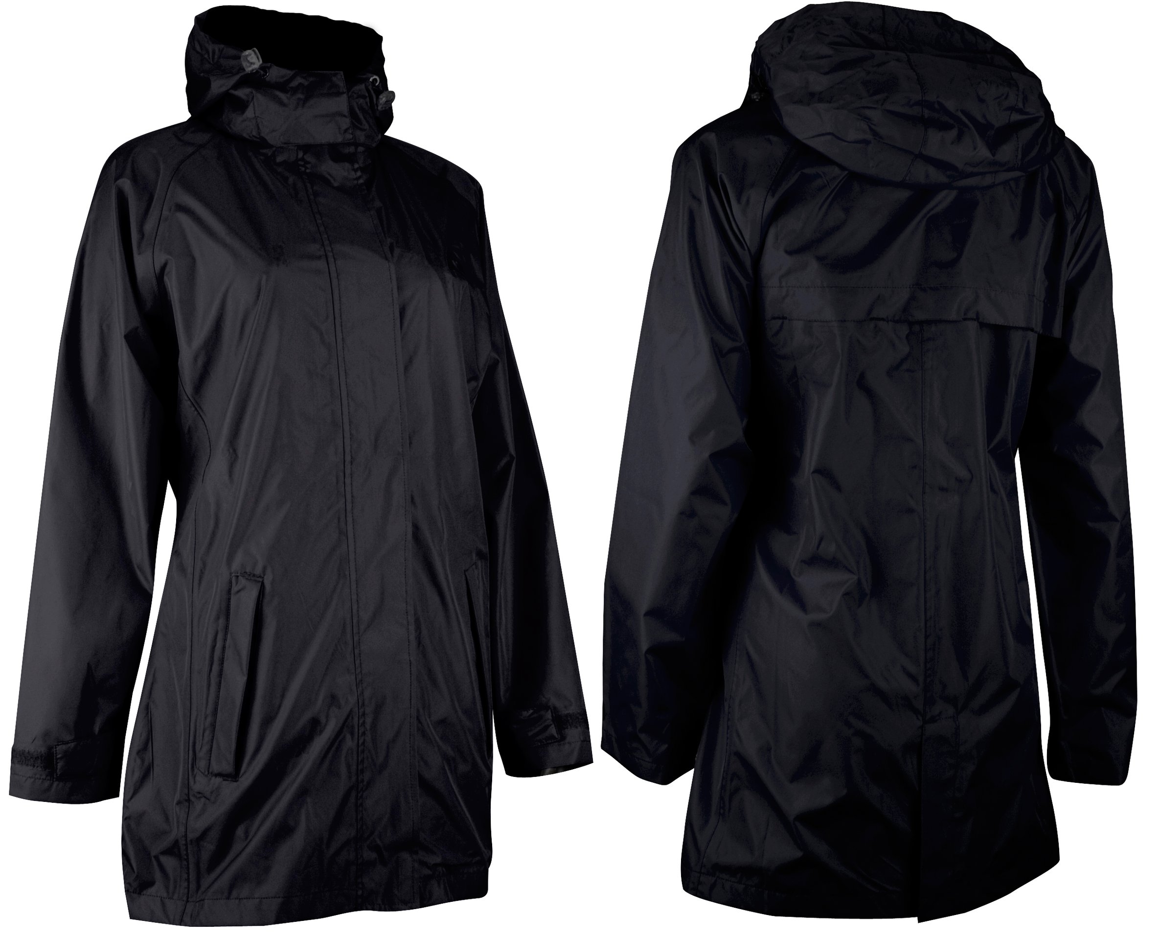 | Kenmerken | • PVC coating, 2000 mm waterdicht • getapete naden • getailleerd lang model • raglanmouw • ritssluiting met overslag en klittenbandsluiting • capuchon in de kraag • elastisch koord met stoppers in capuchon • manchetten met klittenband • steekzakken met regenoverslag en ritssluiting • ventilatieopeningen op de rug met overslag |