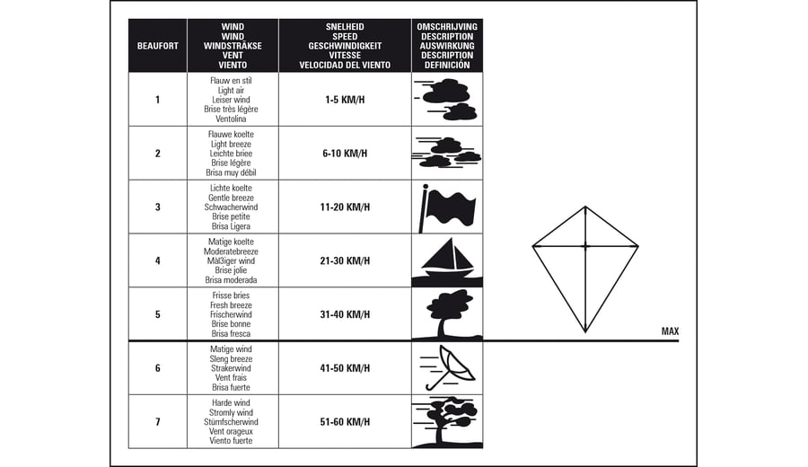 | Kenmerken | • 1-lijns vlieger • polyamide ripstop doek • 4 mm glasfiber stangen • kunststof haspel met 40 meter gevlochten polyester vliegerlijn • 15 kg trekkracht • te gebruiken bij windkracht 2 tot 5 • afmeting 102 x 202 cm |