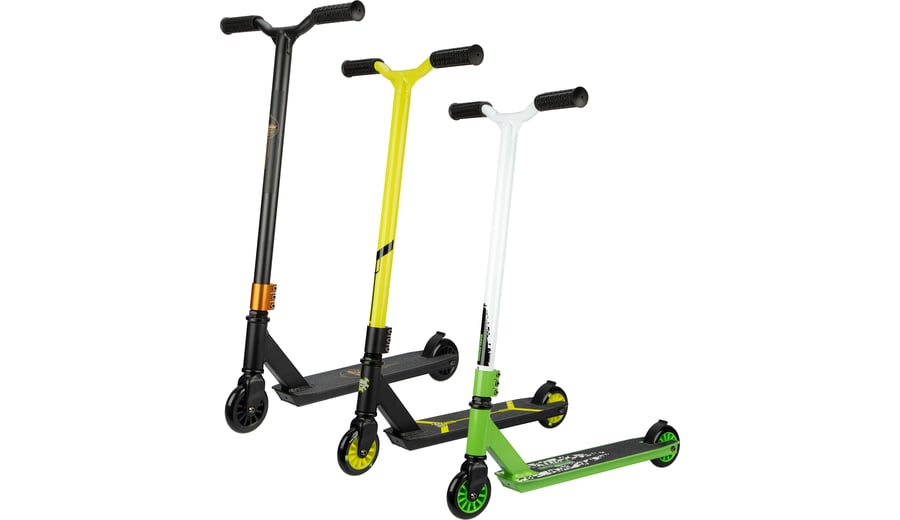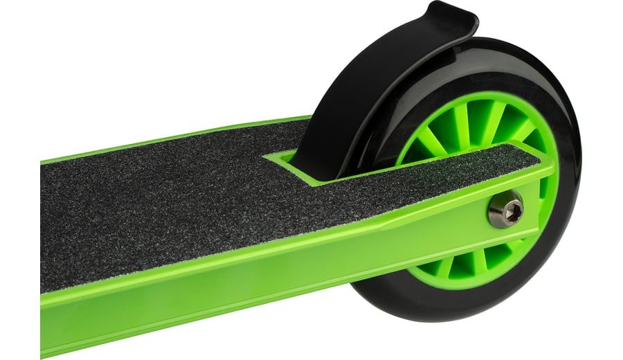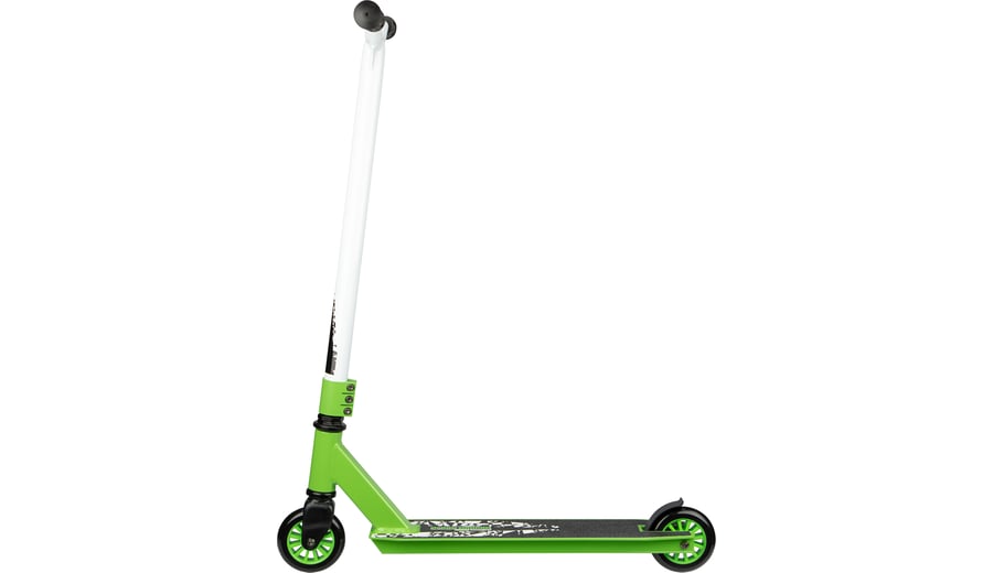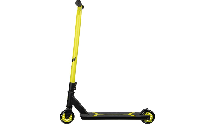 | Kenmerken | • aluminium/heavy duty stalen frame • sterke rechthoekige frameconstructie • aluminium voetenplank met griptape • rubberen handgrepen, uiteinden voorzien van stootbescherming • ABEC 7 kogellagers • 85A PU spaakwielen, afmeting 100 x 24 mm • niet opvouwbaar • triple stangklem • voetrem op het achterwiel • breedte stuur 44 cm • hoogte stuurstang 83 cm, niet verstelbaar • afmeting voetenplank 48 x 10.5 cm • gewicht ca. 3 kg • maximale belasting 100 kg |