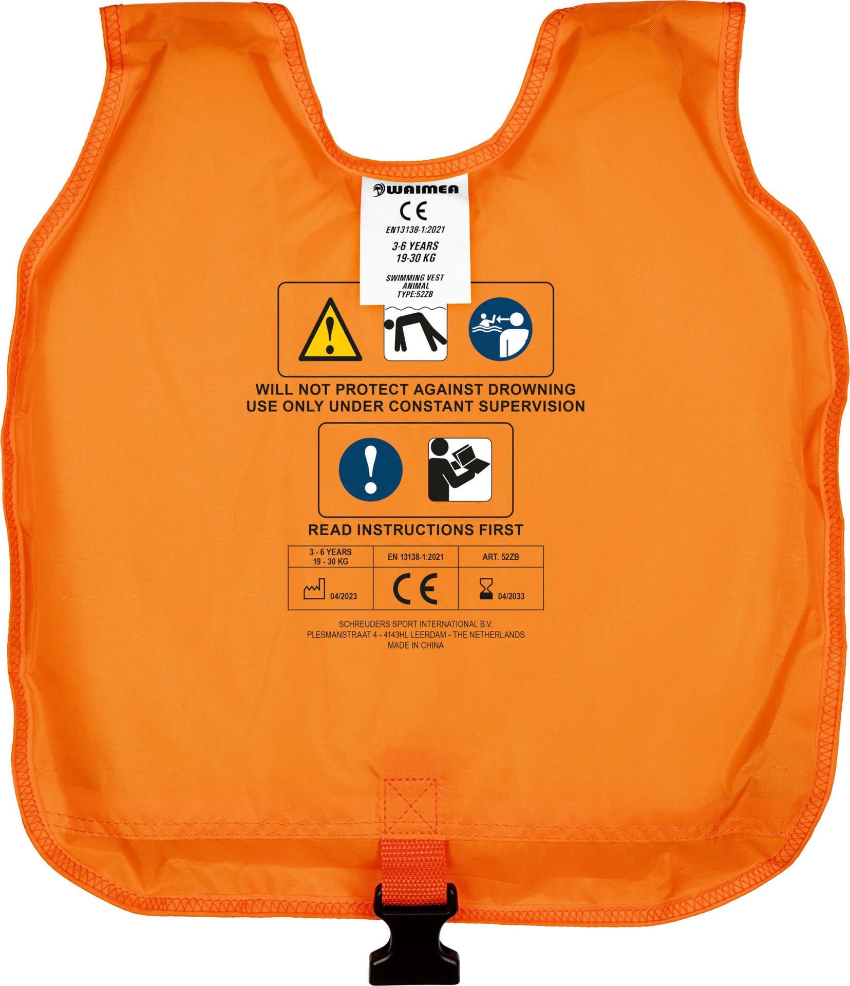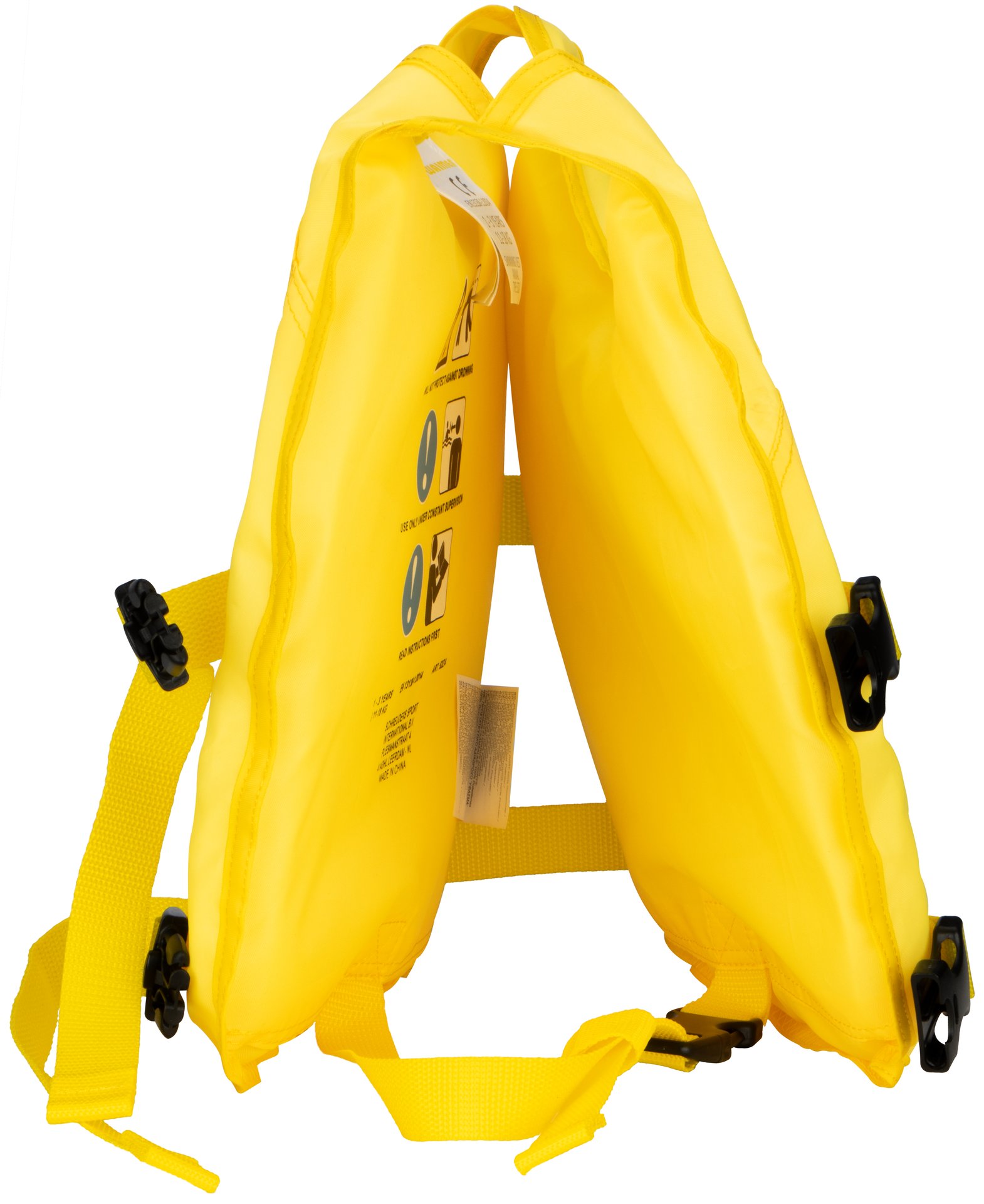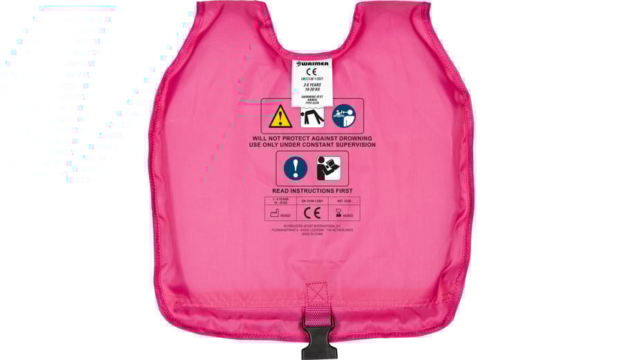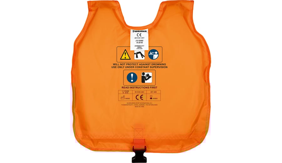 | Kenmerken | • verstelbaar zwemvest d.m.v. veilige quicklocksluitingen • verstelbare PP band tussen de benen met extra veilige quicklocksluiting • polyester met Polyethyleen vulling • CE gekeurd conform EN 13138–1:2021 + AC:2022 • geen levensreddend middel |