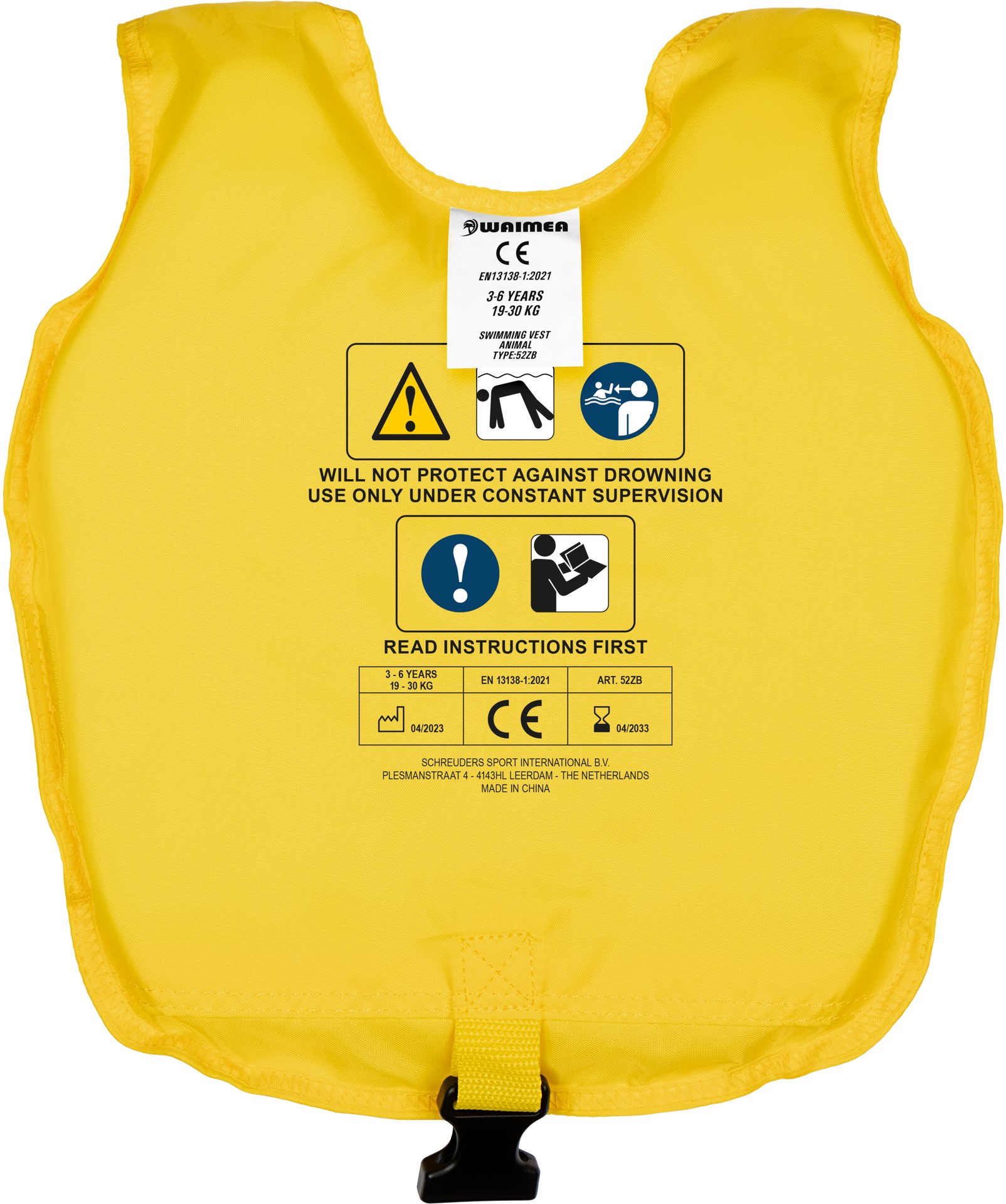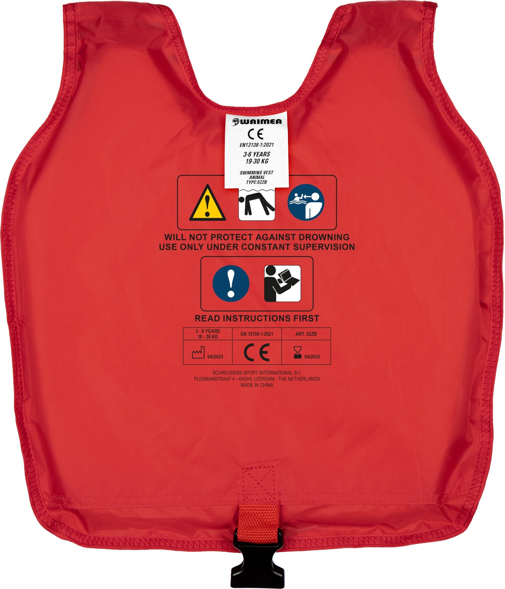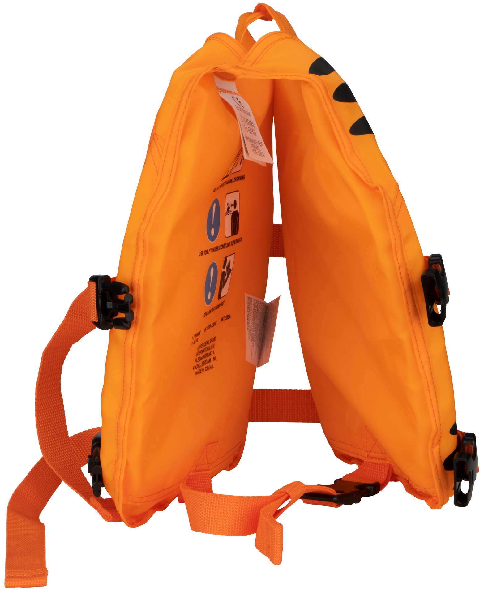 | Kenmerken | • verstelbaar zwemvest d.m.v. veilige quicklocksluitingen • verstelbare PP band tussen de benen met extra veilige quicklocksluiting • polyester met Polyethyleen vulling • CE gekeurd conform EN 13138–1:2021 + AC:2022 • geen levensreddend middel |