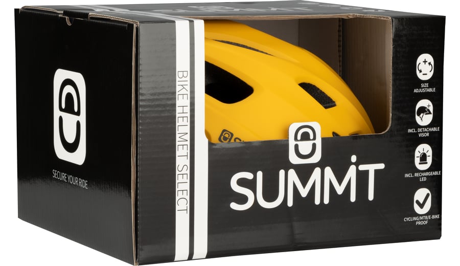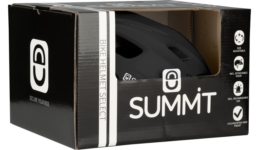 | Kenmerken | • Voldoet aan de gangbare veiligheidsnormen voor fietshelmen • In-mold model, waarbij het dempingsmateriaal direct in de buitenschaal is gespoten • Verlichting: achterzijde LED met 5 standen, USB oplaadbaar d.m.v. bijgeleverde USB kabel • In maat instelbaar voor een hoofdomtrek van 55 -59 (M) cm of 59-61 cm (L) middels een draaiknop • Buitenschaal: matte high-impact polycarbonaat • Binnenvorm: lichtgewicht schokabsorberend EPS • Voering: ademend polyester mesh (uitneembaar voor wasmachine) • Kinband: nylon met reflecterende draad, snelsluiting en kinbeschermer • Voorzien van (afneembaar) vizier • Lichtgewicht, slechts ca. 250 gram |