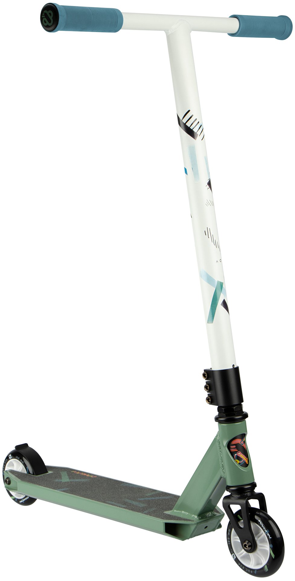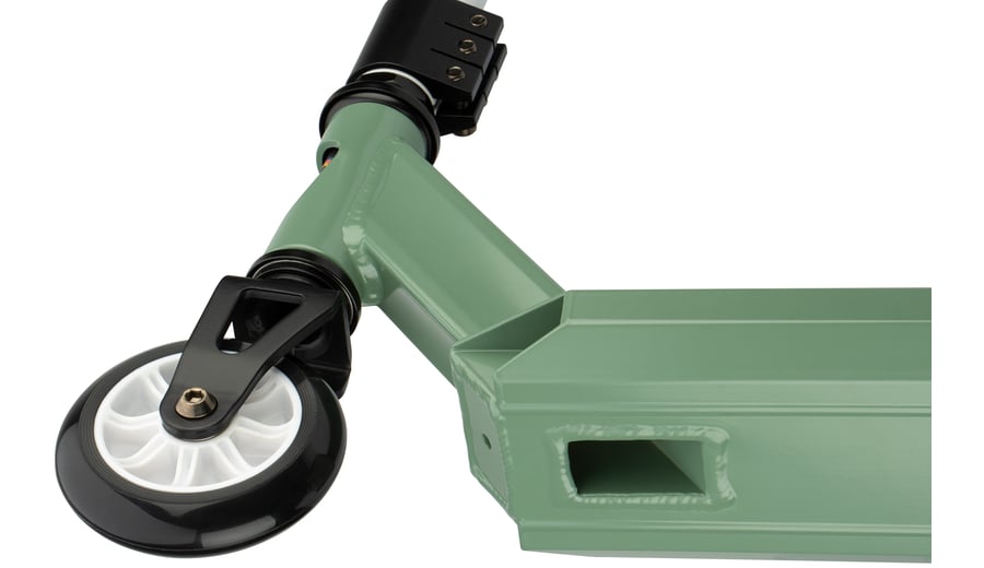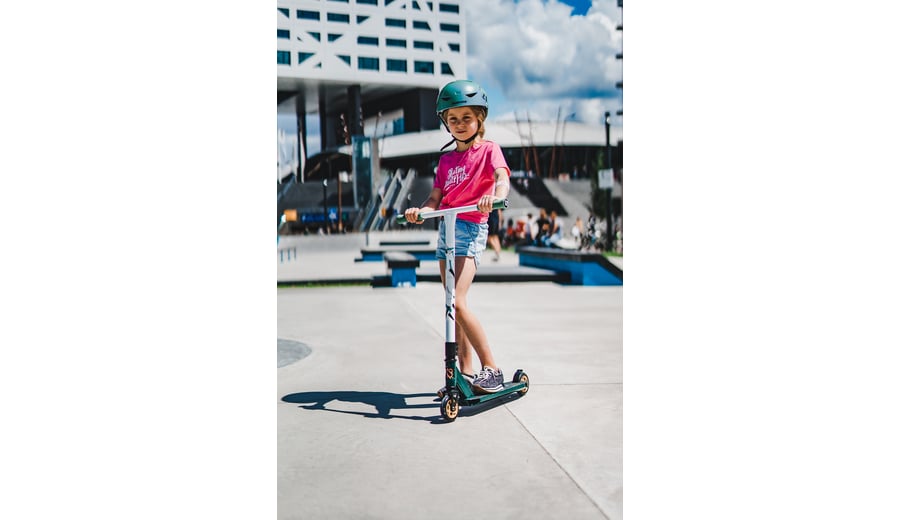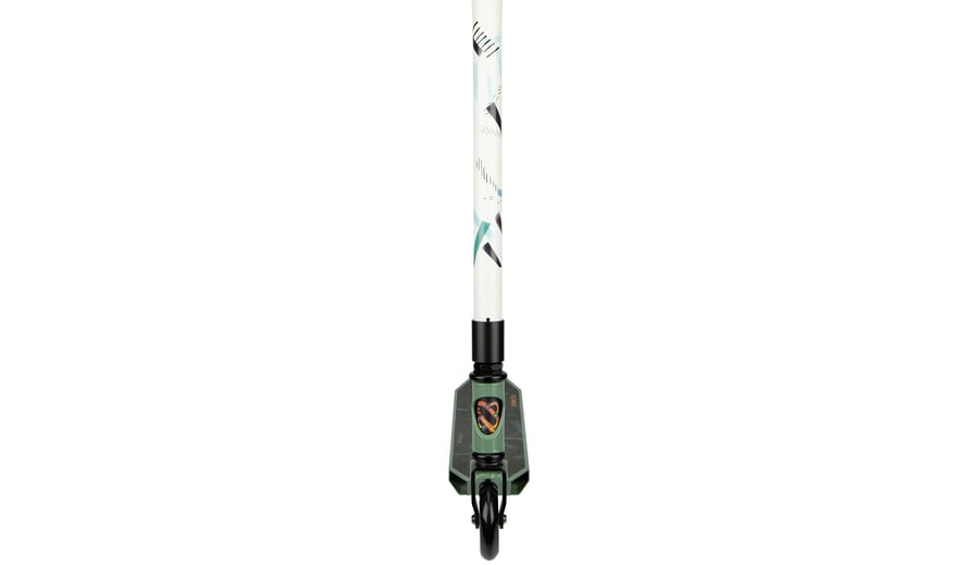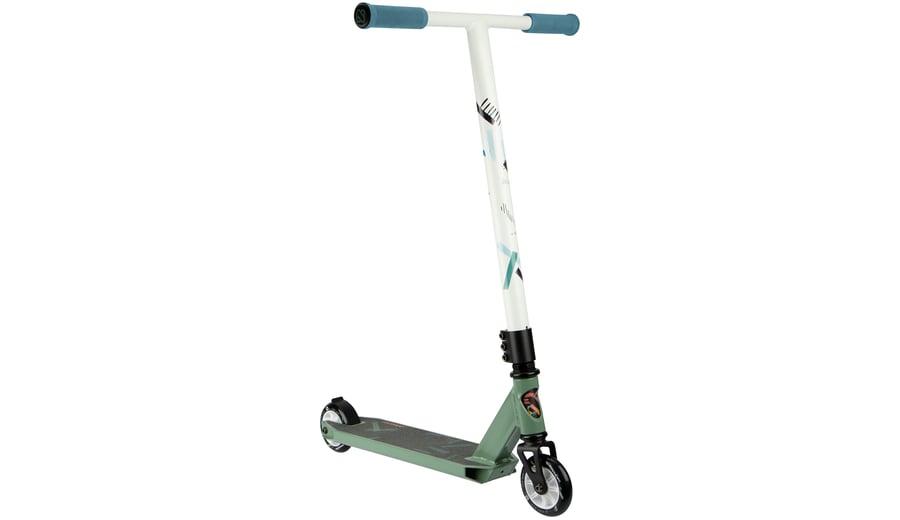 | Kenmerken | • Sterke constructie - gemaakt om trucjes mee te doen • Frame: aluminium, voorvork van gestanst staal • Stuurstang: aluminium T-bar met rubberen grepen, niet verstelbaar, 83 cm • Deck: aluminium met grip tape, closed deck, 48 x 10.6 cm • Wielen: PU gegoten 85A, 100 x 24 mm • Lagers: gesloten ABEC 7 half-chroom • Rem: stalen flexrem op achterwiel • Inclusief 2 inbussleutels |