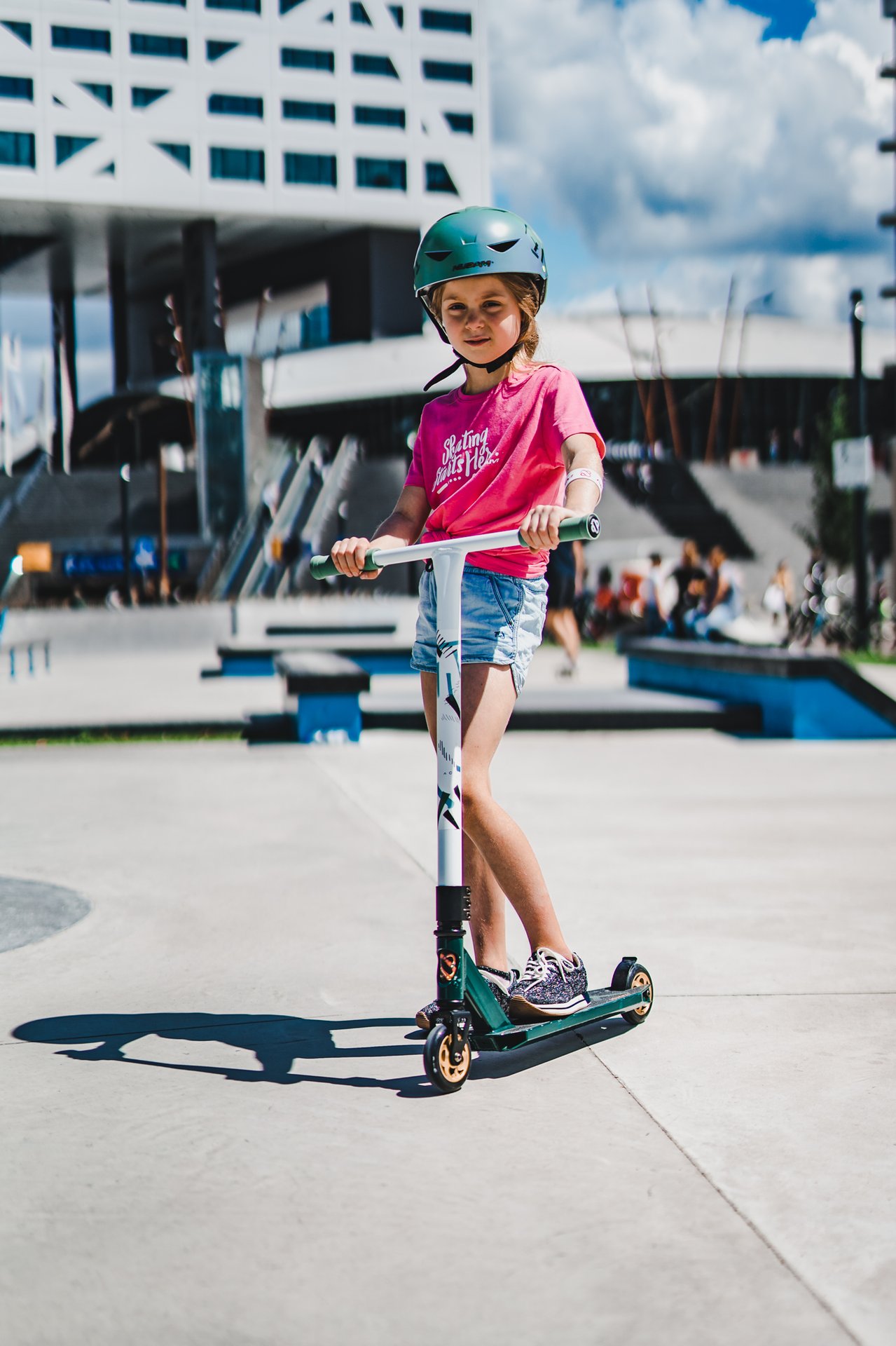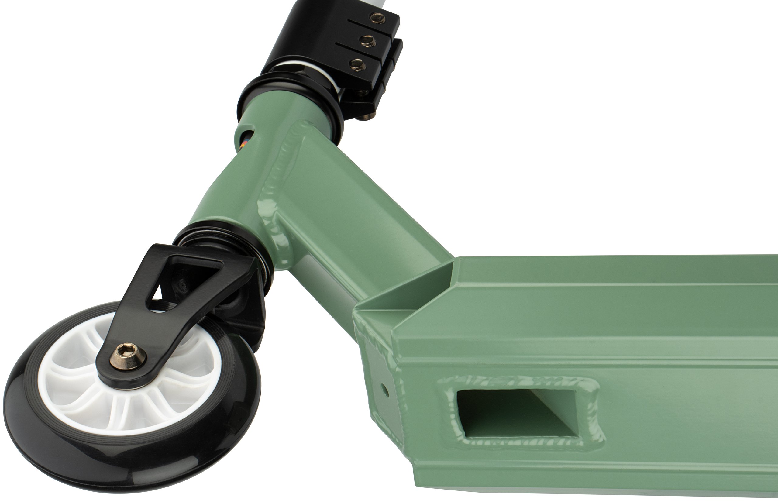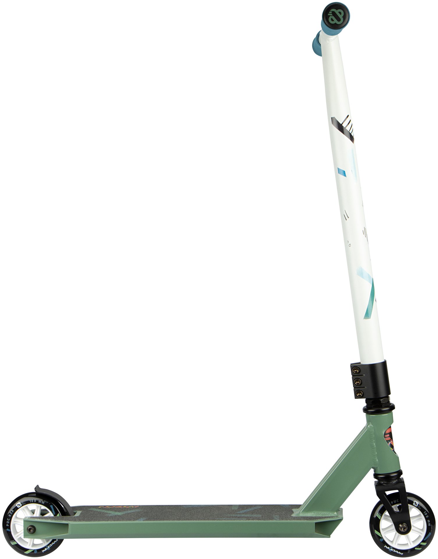 | Kenmerken | • Sterke constructie - gemaakt om trucjes mee te doen • Frame: aluminium, voorvork van gestanst staal • Stuurstang: aluminium T-bar met rubberen grepen, niet verstelbaar, 83 cm • Deck: aluminium met grip tape, closed deck, 48 x 10.6 cm • Wielen: PU gegoten 85A, 100 x 24 mm • Lagers: gesloten ABEC 7 half-chroom • Rem: stalen flexrem op achterwiel • Inclusief 2 inbussleutels |